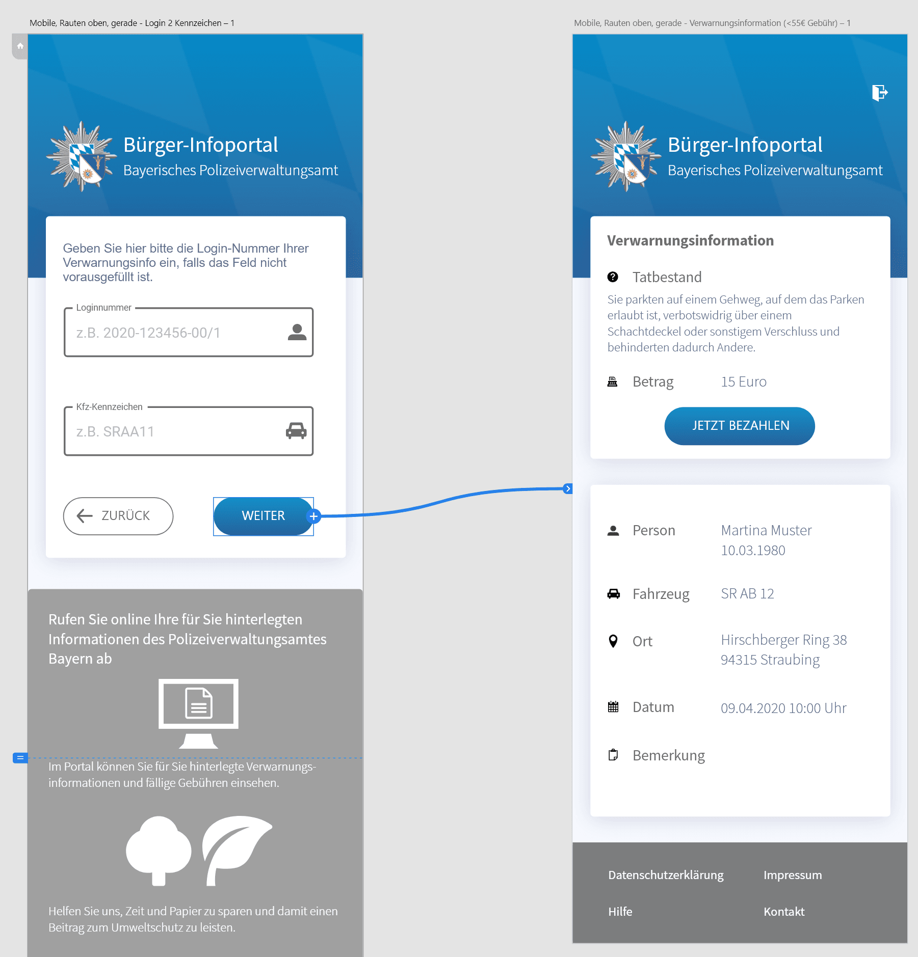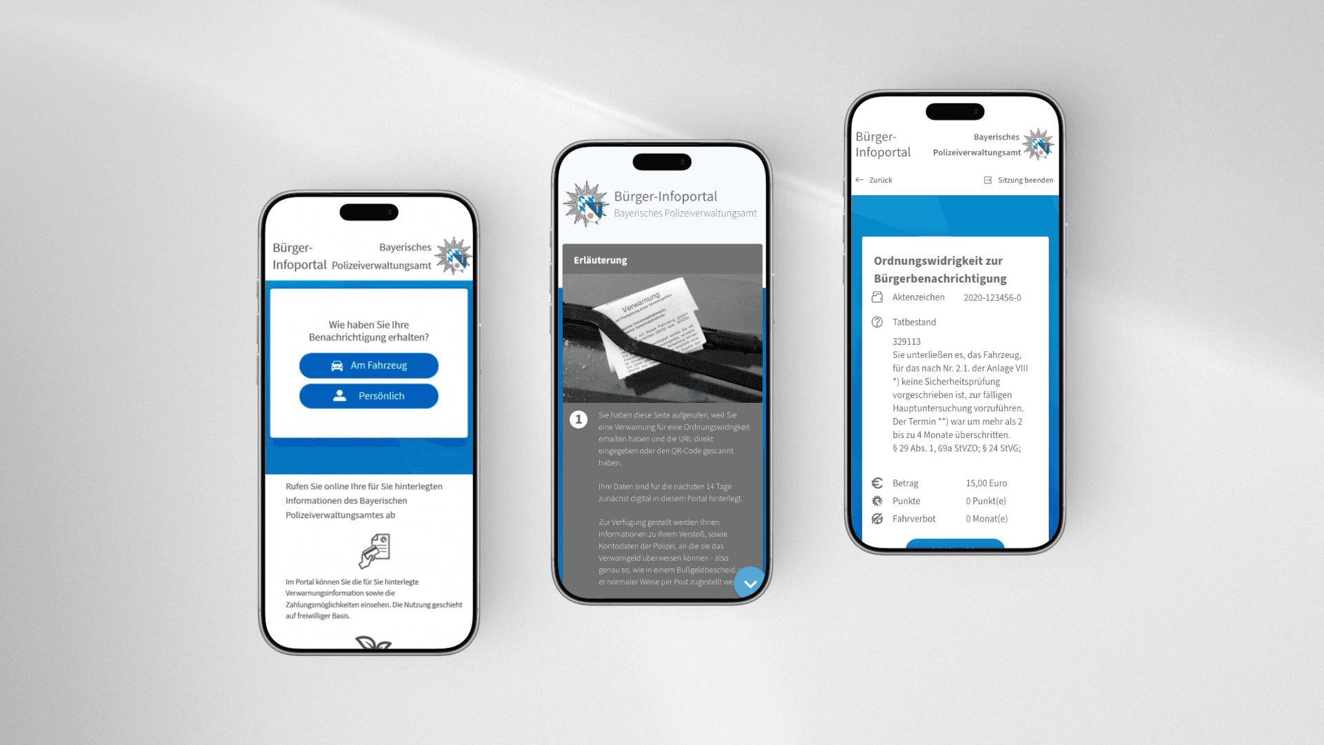 Backend-seitig sollte die bestehende On-Premise-Lösung „Secure Box Bayern“ genutzt werden, in der die Strafzettel sicher gespeichert werden. Das Frontend – also das Bürgerportal zur Einsicht der Verwarnungen – existierte noch nicht und musste neu konzipiert werden.