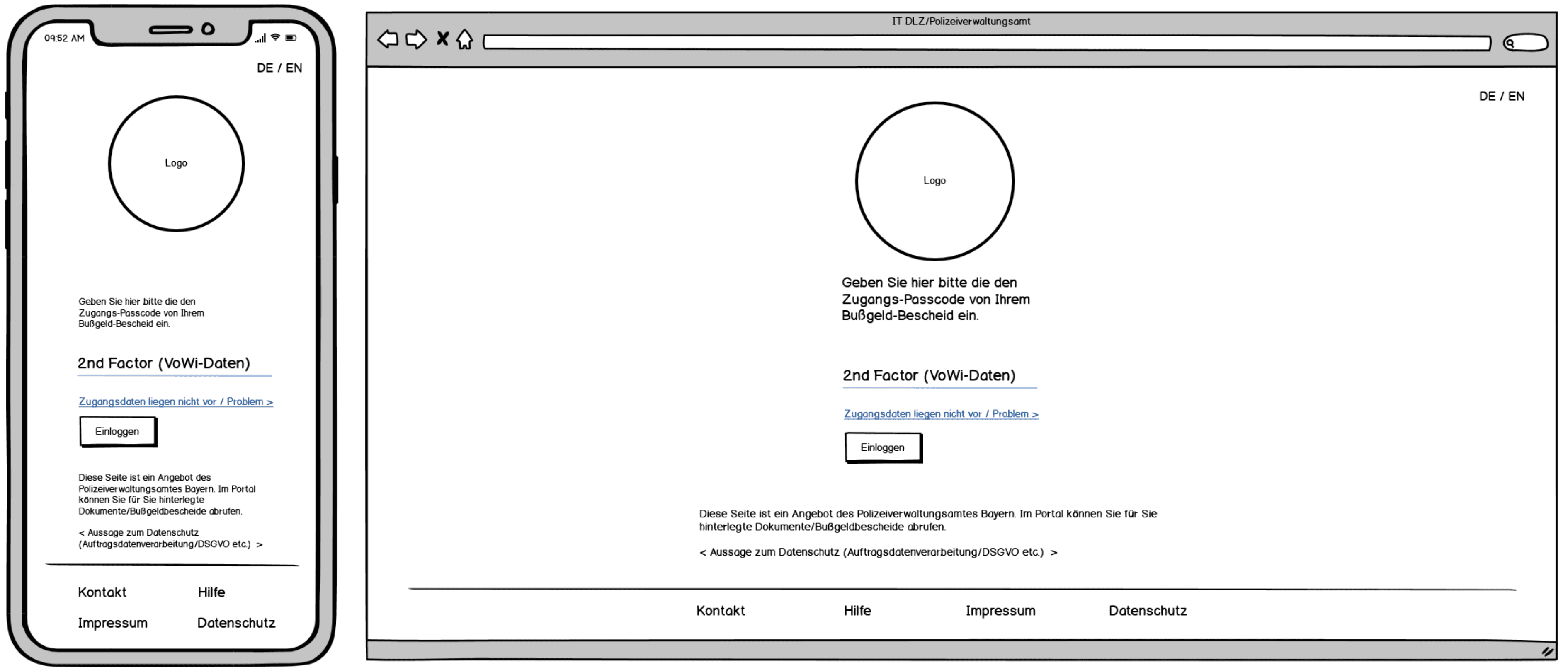 Die Verifizierung sollte über das Kfz-Kennzeichen und einen individuellen Code auf dem Strafzettel erfolgen. Dadurch musste der Login-Bereich entsprechend erweitert werden.