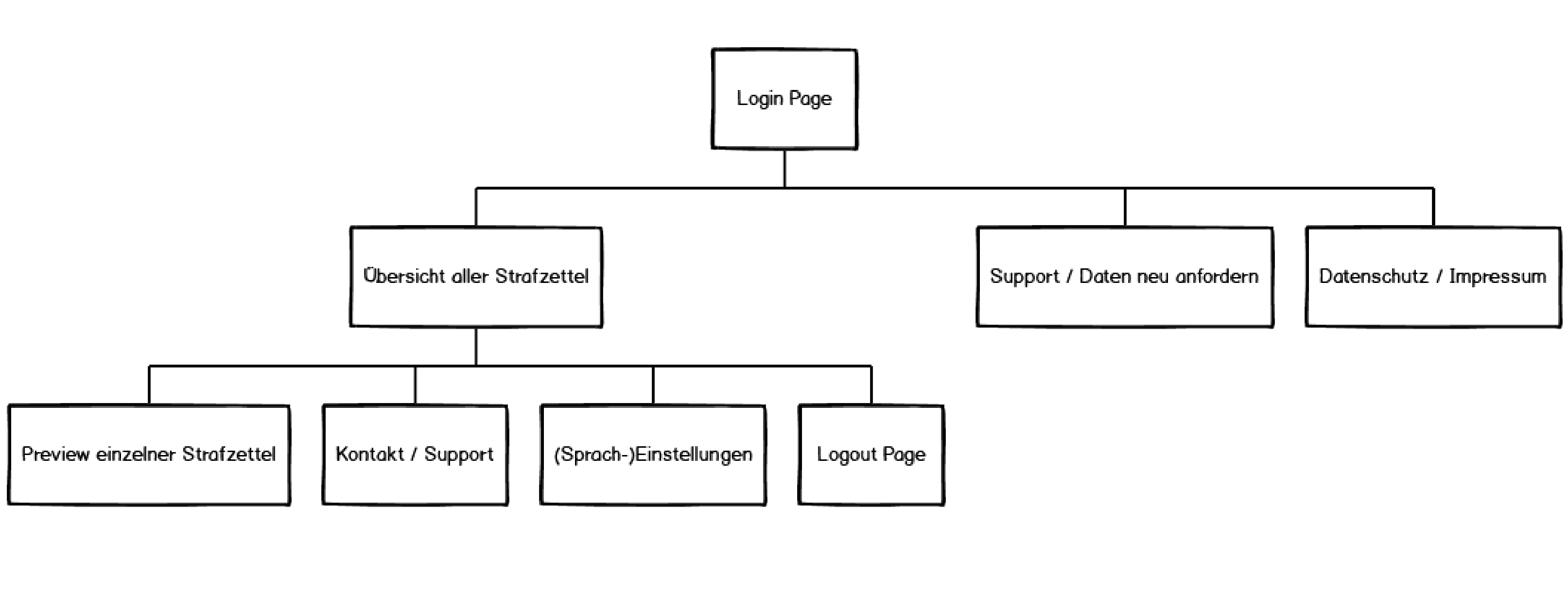 Zu diesem Zeitpunkt gingen wir noch davon aus, dass ein Nutzer potenziell mehrere Verstöße gleichzeitig einsehen könnte. Entsprechend sah das frühe Konzept nach dem Login eine Listenansicht mehrerer Verstöße vor, aus der einzelne Fälle per Klick geöffnet werden sollten.