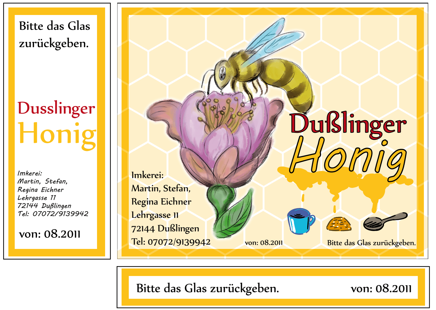 Illustration für das Etikett von Honiggläsern eines privaten Imkers in Dußlingen (Baden-Württemberg).