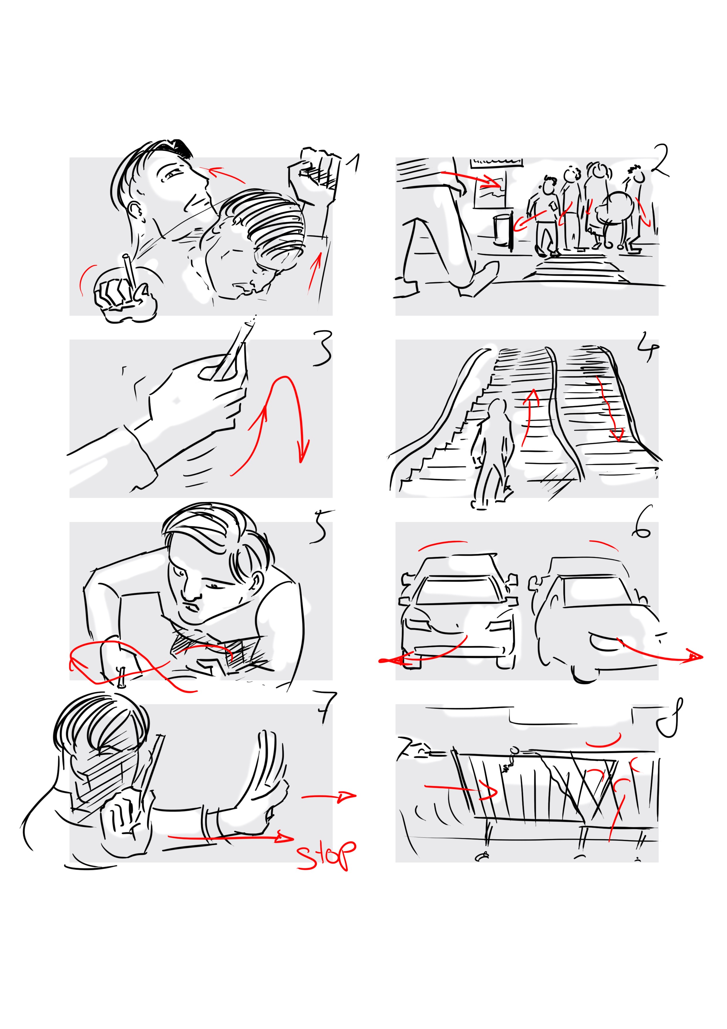Storyboards für drei Kurzfilme die als Studenten-Teamprojekt für einen Wettbewerb des ehemaligen ARD-Senders „einsWeiter“ entwickelt wurden. Entstanden im Rahmen meines Unternehmenskommunikations-Studiums.