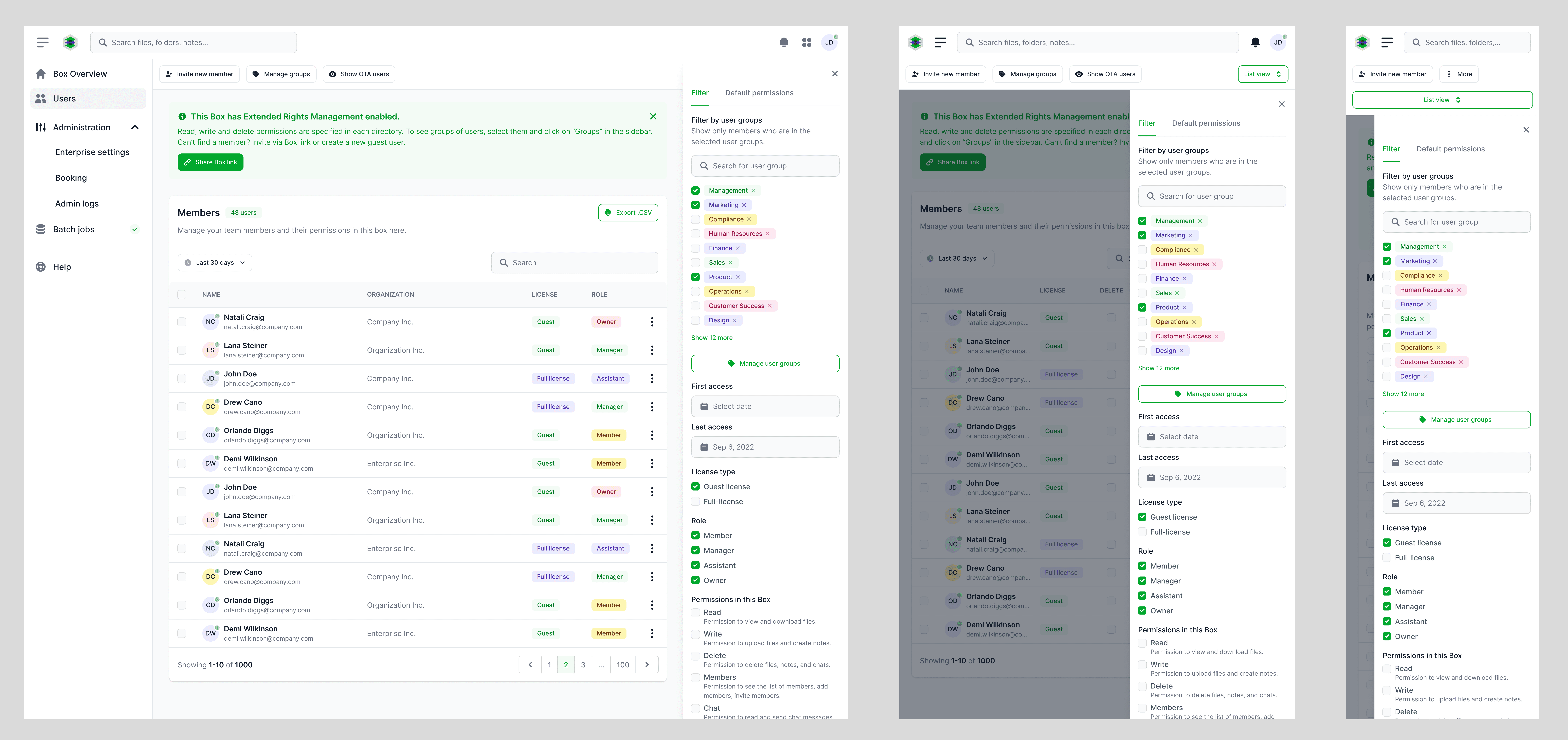 In der Nutzerforschung wurde deutlich, dass Administrator:innen häufig mit großen Nutzerlisten arbeiten und wiederkehrend nach bestimmten Kriterien filtern müssen (z. B. Aktivierungsstatus oder Unternehmenszugehörigkeit).